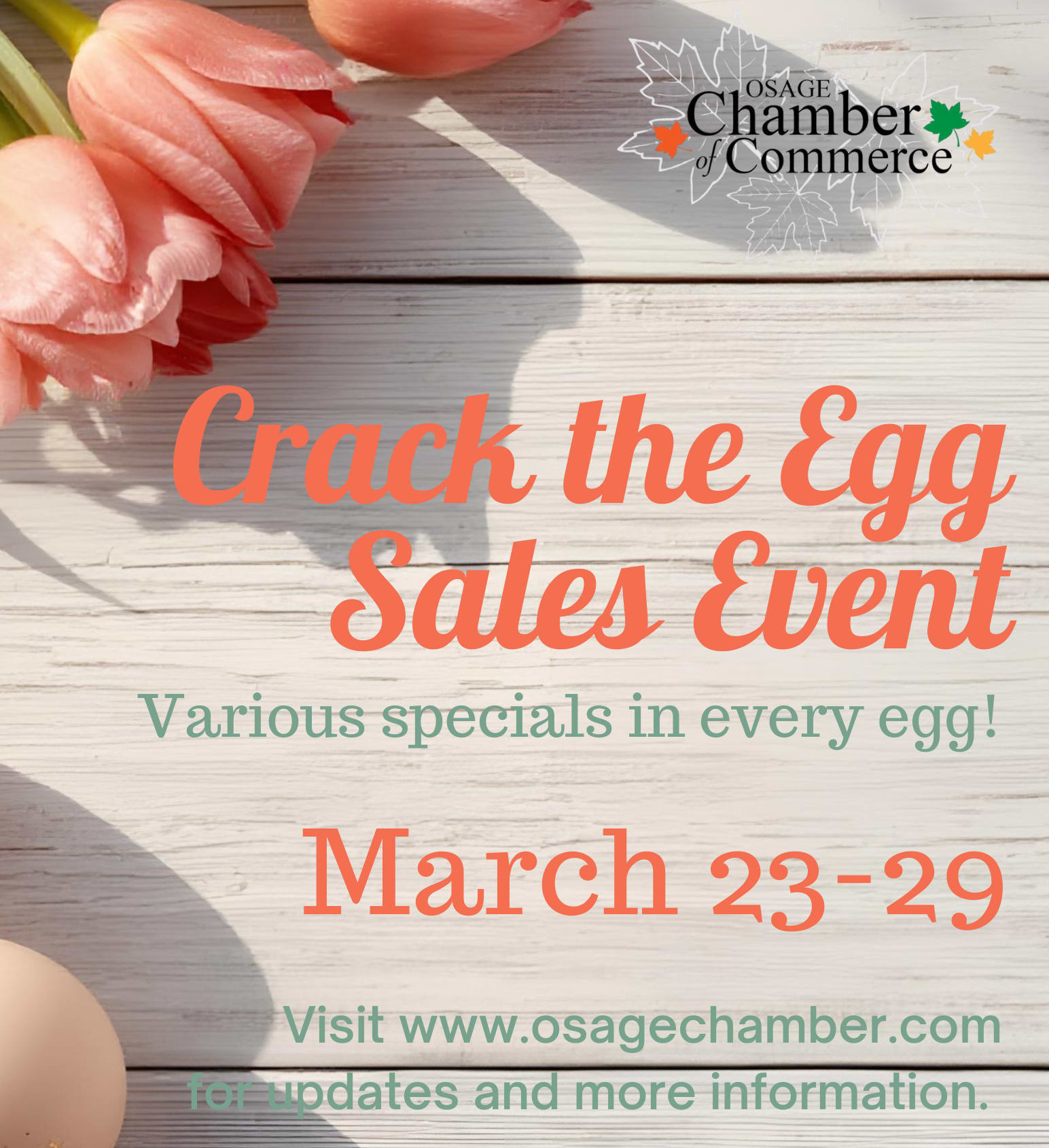 Join us March 23rd - 29th for our Spring Preview and 'Crack the Egg' retail promotion! Stop by participating businesses for your chance to 'crack the egg' and reveal a special discount! Business members: please contact the Chamber office today if you would like to join in the fun!Images